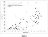 The exclusively 1,2 linked trisaccharide (Structure XII), theB. abortusS99 sLPS and a mix (50/50 by mass) of the exclusively 1,2 linked trisaccharide (Structure XII) and the tetrasaccharide (Structure VI) antigens were tested against 29 serum samples from cattle field infected withB. abortus,20 serum samples from randomly selected non-Brucellainfected cattle, and 31 samples from cattle that are false positive to conventionalBrucellaserodiagnostic assays. The data is presented in 3 scatter plots:B. abortusS99 sLPS against exclusively 1,2 linked trisaccharide (Structure XII) (FIG.13),B. abortusS99 sLPS against a 50/50 mix of exclusively 1,2 linked trisaccharide (Structure XII) and specific M-antigen tetrasaccharide (Structure VI) (FIG.14), and the exclusively 1,2 linked trisaccharide (Structure XII) against the 50/50 mix of exclusively 1,2 linked trisaccharide (Structure XII) and specific M-antigen tetrasaccharide (Structure VI) (FIG.15).