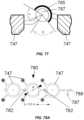 InFIG.77, α and β are the possible angles of rotation for consecutive holders740 (only theholder body747 seen in theFIG.77 and not including the entire holder assembly740) to allow their relative movement in the female ball hinges765 and male ball hinges767 area, in order to conform to thebody27 curves.