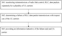 - monitoring retransmissions of radio link control, RLC, data packets separately for a plurality of UL carriers, determining a failure of RLC data packet transmissions with respect one of the UL carriers, and providing an information indicative of the failure and said UL carrier, and.
