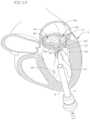 The temporary ring orloop22 can be, for example, a suture or a guide wire, or any other suitable thread or wire. In some embodiments, theloop22 is led or guided around thechordae tendineae48 with for example, a grasping tool or one or more other tools introduced through theintroducer2 or through another delivery sheath or cannula. In other embodiments, theloop22 is advanced through one or more segmented guiding catheters around thechordae tendineae48. In these embodiments, theloop22 is closed, for example, by utilizing a clamping tool or a grasping tool, via tying, or by one of various other attachment methods, and then the segments of the guiding catheter or catheters are retracted, leaving theloop22 in its final position around the chordae. In yet other embodiments, theloop22, like thehelical anchor72, is pre-formed to have a curvature, such that theloop22 surrounds the chordae tendineae as it is deployed. In some embodiments, after theloop22 has been closed, an opening defined by theloop22 can further be tightened or narrowed, to further bundle or corral thechordae tendineae48 closer together. Meanwhile, whileFIG.14 shows thecatheter18 andloop22 deployed together with thedelivery catheter64 and thecoil guide catheter68, in other embodiments, any combination of catheters can be present when theloop22 is deployed around thechordae tendineae48. For example, in previously described embodiments, thedelivery catheter64 is retracted before thecoil anchor72 is deployed, and a similar process can be followed here. Furthermore, in embodiments where theintroducer2 is positioned in an apical access site, theloop22 can also loop around the introducer and/or one or more of the delivery or coil guide catheters. If, instead, a transseptal procedure is performed, a distal end of theloop catheter18 can instead be advanced through the mitral valve from the left atrium into the left ventricle, and theloop22 can be deployed around thechordae tendineae48, without also bundling or corralling any additional delivery catheters or tubes therein.