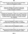 At810, the media guidance application detects a user at the geographic location. The media guidance application may track the location of a user through the user's mobile device or other user equipment. In some embodiments, the media guidance application detects the user at the selected geographic location by detecting that the user is within a threshold distance from the selected geographic location. For example, the media guidance application may determine that anyone within three city blocks of the intersection of 45thStreet and Broadway is in Times Square. In other embodiments, the media guidance application may have predetermined regions associated with a location. For example, the media guidance application may draw a region including multiple city blocks and anyone within the determined boundaries is at Times Square.