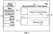FIG.1 shows an illustrative embodiment of a display screen that may be used to provide media guidance recommendations based on the geographic location of the user, in accordance with some embodiments of the disclosure;