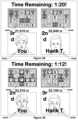 where lLG=length of the line graph dimension window and r1=a line graph conversion ratio (these equations and discussion relate, for example, to the scenario provided above where the player indicator is located halfway along the path). For example, if it is desired to normalize to a line graph dimension window that is 200 units long, with the player shown at the 100 unit mark, then lLGwould equal 200. The positions of another player's graphical indicator on the line graph may be determined according to: