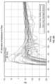 FIG.43 is a diagram including various curves showing an example compression low4302 in a continuous glucose sensor. AlthoughFIG.43 describes a continuous glucose sensor, similar effects are believed to be exhibited by other types of analyte sensors. Thecurve4308 shows glucose concentration values returned by the sensor at five (5) minute intervals. Acurve4310 shows glucose concentration values returned by the sensor at thirty (30) second intervals. Acurve4306 shows a temperature at the sensor. Acurve4304 shows membrane impedance, for example, measured using the technique described herein with reference toFIGS.5A-5F.