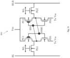 The drains of pull-up transistor PU1 and pull-down transistor PD1 are coupled together, and the drains of pull-up transistor PU2 and pull-down transistor PD2 are coupled together. Transistors PU1 and PD1 are cross-coupled with transistors PU2 and PD2 to form a first data latch. The gates of transistors PU2 and PD2 are coupled together and to the drains of transistors PU1 and PD1 to form a first storage node SN1, and the gates of transistors PU1 and PD1 are coupled together and to the drains of transistors PU2 and PD2 to form a complementary first storage node SNB1. Sources of the pull-up transistors PU1 and PU2 are coupled to power voltage Vcc (also referred to as Vdd), and the sources of the pull-down transistors PD1 and PD2 are coupled to a voltage Vss, which may be an electrical ground in some embodiments.