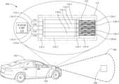 EXAMPLESExample 1a: An apparatus comprising: an antenna system including: a routing portion having one or more hollow channels, each of the hollow channels filled with an air dielectric; a feed portion configured to connect each of the hollow channels to a corresponding channel of a radar chip; and a waveguide portion including one or more radiation channels corresponding to each of the hollow channels, each of the radiation channels being loaded with a non-air dielectric, a surface of each of the radiation channels having a pattern of radiation elements that allow electromagnetic (EM) energy to escape the non-air dielectric.