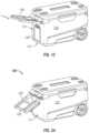 Theextension portion120 can be, for example, a handle, as shown inFIGS.1A-1C, allowing a user to conveniently pull or push thecontainer100. To this end, thecontainer100 can include one or more wheels I05 to allow thecontainer body110 to roll while being pulled or pushed via theextension portion120. Theextension portion120, or handle, can include, for example, a pair of outwardly extending arms124 (FIG.3A) connected via a distal, transversely extending crossbar126 (FIG.3A) (e.g., for gripping the handle), as shown inFIG.3A. Thehandle120 can also include additional transversely extending crossbars disposed proximal of thedistal crossbar126. Moreover, as described in greater detail below (e.g., seeFIGS.5A and5B), the upper surfaces of thearms124 andcrossbar126 can form an externaltray retention portion200 configured to removably retain atray140 having a substantially flat, elongate surface.