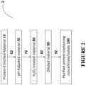 The resulting H2O2-treated material80 is next diluted 82 with water to givediluted material90. The dilution of material80 with water serves multiple purposes. For example, the dilution can quench remaining H2O2used instep72. Dilution also helps to protect equipment (e.g., filters) used in subsequent processing steps. The extent of dilution can vary. In some embodiments, material80 is diluted 1:1 with water by volume or about 1:2 with water by volume; however, the disclosure is not limited thereto.