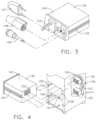 FIG.4 is a partial perspective view of a surgical hub enclosure, and of a combo generator module slidably receivable in a drawer of the surgical hub enclosure, in accordance with at least one aspect of the present disclosure.