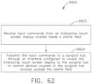FIG.62 is a logic flow diagram6920 of a process depicting a control program or a logic configuration to communicate from inside a sterile field to a device located outside the sterile field, according to one aspect of the present disclosure. In one aspect, a control unit comprises an interactive touchscreen display, an interface configured to couple the interactive touchscreen display to a surgical hub, a processor, and a memory coupled to the processor. The memory stores instructions executable by the processor to receive6922 input commands from the interactive touchscreen display located inside a sterile field and transmits6924 the input commands to a surgical hub to control devices coupled to the surgical hub located outside the sterile field.