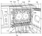 Still referring toFIG.5, thecassette interface110 also includesvacuum ports151 that are connected to vacuum lines positioned within the housing of thePD cycler102. Thevacuum ports151 allow vacuum pressure to be applied to thecassette membrane140 when thecassette112 is positioned adjacent to thecassette interface110. Applying vacuum pressure to themembrane140 through thevacuum ports151 draws themembrane140 toward thecassette interface110, thereby forming a seal between thecassette interface110 and themembrane140.