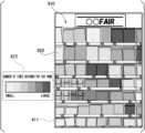 However, the method in which thedisplay unit220 displays the customer behavior index value is not limited to the method of adding a color to the image of each item. For example, thedisplay unit220 may display a customer behavior index value by adding a predetermined pattern such as that of stripes or dots, instead of a color, to the image of each item. Thedisplay unit220 may also display a number indicating the customer behavior index value such that the number is superimposed on the image of each item.
