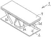 Functionally, the load-bearing plate4 corresponds to the so-called nacelle of a conventional hexapod, but differs from this nacelle, which is regarded as a rigid body, by the deformability thereof, and that it consequently cannot have a so-called posture allocated, and its extension in space cannot be described (like in a rigid body) by six posture parameters.