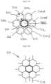 FIG.25 depicts exemplary arrangements of linked active subparticles of various shapes on the surface of a core subparticle.