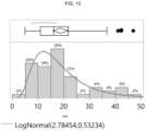 FIG.12 is a histogram of the fibril width data in nanometers and a fit of a lognormal distribution from the manual image analysis ofFIG.11 of Example 5 in accordance with embodiments described herein;