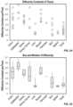 FIG.26 shows the distributions of raw percent diffusion at the tissue sample center at about 3, about 5 and about 6 hours determined for the several tissue types, andFIG.27 shows a set of box and whisker distributions of percent diffusion at the tissue sample center at about 3, about 5 and about 6 hours for the several tissue types.FIG.28 shows the distributions of raw formaldehyde concentration as determined at the tissue sample center at about 3, about 5 and about 6 hours for several tissue types, andFIG.29 shows a set of box and whisker distributions of formaldehyde concentration at the tissue sample center at about 3, about 5 and about 6 hours for several tissue types. From a comparison of the raw data and box-and-whisker distributions based on measuring percent diffusion and those based on determining reagent concentration at the center of the tissue, it can be seen that the data tend to cluster more tightly when concentration is utilized.
