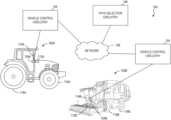 BACKGROUNDAgricultural vehicles have become increasingly automated. Agricultural vehicles may semi-autonomously or fully-autonomously drive and perform operations on fields using implements for planting, spraying, harvesting, fertilizing, stripping/tilling, etc. These autonomous agricultural vehicles include multiple sensors (e.g., Global Navigation Satellite Systems (GNSS), Global Positioning Systems (GPS), Light Detection and Ranging (LIDAR), Radio Detection and Ranging (RADAR), Sound Navigation and Ranging (SONAR), telematics sensors, etc.) to help navigate without assistance, or with limited assistance, from human users.