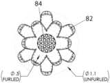 FIG.18 is a diagram illustrating a fourth component of the sample implementation with anouter tubing92 with a head having a plurality petals that can either be in an closed position (also referred to as in the “enclosed position) or an open position. The plurality of petals in the head of theouter tubing92 is in the enclosed position when the plurality of thepetals82 and the plurality of thebristles84 are inside theouter tubing92. The plurality ofpetals82 in the head of theouter tubing92 are in the open position when the plurality of thepetals82 and the plurality of thebristles84 extended out through ahead94 in theouter tubing92.