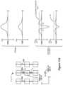 FIGS.11A and11B respectively explain what happens during issuance of the pulses at times t1 and t2, and how stimulation in the dorsal column is promoted or suppressed. Such promotion or suppression can be understood by review of the dorsal column fibers beneath the relevant electrodes, as assisted by review of the relevant activating function d2V/dx2. In this regard, tissues beneath the electrodes are labeled inFIGS.11A and11B as130mand130f, where “m” refers to the fibers in the middle of the array, and “f” refers to fibers flanking the middle from a medio-lateral perspective (along axis y).Such tissues130mand130fwould normally contain many dorsal column axons, which as noted earlier are aligned in the x (rostral-caudal) direction.