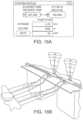 FIGS.13A and B show how TEER measurements were made in one embodiment.FIG.13A is an enlarged schematic view showing how electrodes on the chip were connected, along with pipette tips engaging the chip;FIG.13B shows the same connected chip to the right of a Epithelial Voltohmmeter.