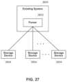 The secure data parser of the present invention may be integrated into any suitable existing system in order to provide the use of its functionality in each system's respective environment.FIG.27 shows a block diagram of anillustrative system2600, which may include software, hardware, or both for implementing any suitable application.System2600 may be an existing system in which securedata parser2602 may be retrofitted as an integrated component. Alternatively,secure data parser2602 may be integrated into anysuitable system2600 from, for example, its earliest design stage.Secure data parser2600 may be integrated at any suitable level ofsystem2600. For example,secure data parser2602 may be integrated intosystem2600 at a sufficiently back-end level such that the presence ofsecure data parser2602 may be substantially transparent to an end user ofsystem2600.Secure data parser2602 may be used for parsing and splitting data among one ormore storage devices2604 in accordance with the present invention. Some illustrative examples of systems having the secure data parser integrated therein are discussed below.