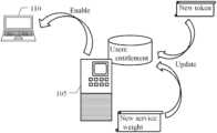 Atoken allocator345 is used to allocate the usage tokens to the users. Thetoken allocator345 reads therule repository335 and writes theuser repository325. Both theservice enabler315 and thetoken monitor330 control thetoken allocator345.