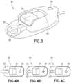 FIG.4C is a top view of the needle hub ofFIG.3, showing an indicator after withdrawal of a cannula.