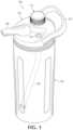 When the user wishes they may swivel theexternal straw108 over the top of thecap101. The shape and placement of theexternal straw108,cap101, andactuator button142 is such that when theexternal straw108 is in the fully stowed position, it is mechanically held in position against inadvertent movement and physically blocks access to theactuator button142. This makes the device safe to stow and transport, without worry of inadvertently actuating the device to dispense.