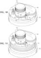 Thediaphragm138 has several attributes that, in example configurations, may contribute to a robust seal of themetering valve137, preventing the flow of beverage past themetering valve137 except when the valve is deliberately opened. These attributes include (a) the ratio of the working area of thediaphragm138 versus that of themetering valve137, which determines the mechanical advantage of the suction the user can generate against the pressure in thebeverage container102 that tends to keep themetering valve137 closed, but still having sufficient fluid flow area through themetering valve137 and adiaphragm138 area that fits within the available space in thecap101; (b) thediaphragm138 preload, which should be high enough to keep themetering valve137 firmly closed against gravity in the absence of internal vessel pressure while still being low enough to allow the user to use a comfortable level of suction to open the valve; and (c) the restoring force curve (spring rate) of thediaphragm138 when installed, which must be sufficiently high to produce the necessary preload, yet low enough to allow movement at sufficiently low suction pressure for a comfortable user experience. Thediaphragm138 illustrated inFIG.9 uses its shape, which is slightly domed as shown, to create this spring force.