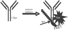 is about 10% of the entire polymer. In other instances, the polymer is conjugated to a secondary dye reporter and an antibody.