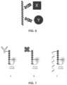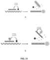 FIG.19 shows the biotin modified polymer was bound to a dye labeled streptavidin (Cy3 or Texas Red—top). Excitation at 440 nm in a fluorometer resulted in emission from the dye acceptors at their respective emission wavelength (approximately 570 nm and 620 nm respectively—bottom left) as well as some residual emission from the polymer (approximately 520 nm). A titration was also performed to saturate the binding of polymer to the streptavidin (bottom right). The solid curve indicates the emission from the Cy3 label on the streptavidin via energy transfer from the polymer at 440 nm excitation. The dotted curve represents the negative control where the streptavidin was first treated with excess biotin to block the binding sites prior to treatment with the biotinylated polymer.