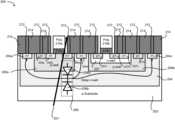 FIG.2 is an illustration of a particle sensor around the transistors in which p-wells and p-substrate form diodes with the deep n-well in accordance with an example.