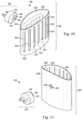 FIG.12 is a front perspective view andFIG.13 is a rear perspective view of a fifth embodiment of an insect trap, indicated generally at510.Insect trap510 includes abase portion512 and aremovable trap portion514.Base portion512 includes ahousing516 with alarge opening518 intop surface560 to receivetrap portion514, one or moresmaller openings520 onfront surface562, and two electricallyconductive prongs522 onrear surface564, adapted to mountinsect trap510 to a wall and provide power toinsect trap510 by inserting into a standard household electrical wall socket. While an electrical socket has been described as providing power to trap510, any suitable power source may be used.Base portion512 may be injection molded of opaque plastic, although other materials and construction techniques could also be used.