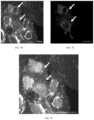 FIGS.5P-5R are enlarged microscopic images of the same field of well 3 inFIG.3: U2OS-NPC1-null cells, four days post-transfection with hMITF-FLAG tag plasmid (as negative control). The areas inFIG.5P showing accumulation of white particles are areas of filipin accumulation. The areas inFIG.5Q showing light gray and white accumulation are cells that highly expressed the MITF-FLAG tag after transfection with hMITF-FLAG tag plasmid, and the FLAG tag epitope has been detected by the anti-FLAG antibody.FIG.5R shows both showing both the filipin staining and anti-FLAG tag antibody. This shows that filipin is present in cells that have been transfected with hMITF-FLAG tag plasmid.