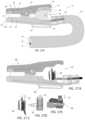 FIG.16 illustrates a distal sensor module in accordance with the present invention which has been attached to a human thumb using a spring clamp.FIG.17A illustrates a cross section of the distal sensor module ofFIG.16 rotated ninety degrees and illustrates use of pneumatic pressure to inflate a pressure bladder inside of the spring clamp. InFIG.17B, a stepper motor is used inside of the same spring clamp to replace use of pneumatic pressure to inflate a pressure bladder.FIGS.17C, D and E illustrate, respectively, a stepper motor, a linear piezo actuator and a linear piezo actuator with ratchet, all of which can be used inside of the spring clamp.