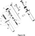 Reference is next invited from the accompanyingFIGS.2aand2bwhich shows a preferred embodiment of the present injecting system with twist based operable safety housing. As shown in the referred figures, the twist based prefilledmedicament injecting device200 includes aneedle assembly202 and an enclosing means. The enclosing means is divided in two parts viz. anouter housing201aand aninner housing201b, wherein, theouter housing201ais configured to fully enclose theneedle assembly202 and theinner housing201bis coupled to distal end of theouter housing201aand configured to telescopically move within theouter housing201a.