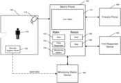 In some implementations, themobile phone130 may store contact information for thefirst responder device150 based on the address of theproperty105 and the type of alarm condition. In these implementations, thefirst responder device150 may be a central computer of an emergency services agency that is able to relay video to mobile devices used by first responders handling the alarm condition. For instance, when the alarm condition is an expected break in at theproperty105, themobile phone130 may access contact information for a central computer at a police station that services theproperty105 and share the video with the central computer at the police station with data indicating the address of theproperty105. In this instance, the central computer at the police station may identify police officers responding to the alarm condition based on the address of theproperty105, access contact information for mobile devices used by the identified police officers, and relay the shared video to the mobile devices used by the identified police officers. In another example, when the alarm condition is a fire at theproperty105, themobile phone130 may access contact information for a central computer at a fire station that services theproperty105 and share the video with the central computer at the fire station with data indicating the address of theproperty105. In this example, the central computer at the fir station may identify firemen responding to the alarm condition based on the address of theproperty105, access contact information for mobile devices used by the identified firemen, and relay the shared video to the mobile devices used by the identified firemen.