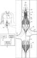 Referring again toFIGS.6A-C, for some applications, the impeller includes a plurality ofelongate elements67 extending radially from centralaxial spring54 to outer helicalelongate elements52. The elongate elements are typically flexible but are substantially non-stretchable along the axis defined by the elongate elements. Further typically, each of the elongate elements is configured not to exert force upon the helical elongate element, unless force is acting upon the impeller that is causing the helical elongate element to move radially outward, such that (in the absence of the elongate element) a separation between the helical elongate element and the central axial spring would be greater than a length of the elongate element. For example, the elongate elements may include strings (such as polyester, and/or another polymer or a natural material that contains fibers) and/or wires (such as nitinol wires, and/or wires made of a different alloy, or a metal).