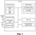 The various components of theUE702 are coupled together by abus system711, which may include a power bus, a control signal bus and a status signal bus, in addition to a data bus. However, for the sake of clarity, the various buses are illustrated inFIG.7 as thebus system711. TheUE702 may also include a digital signal processor (DSP)713 for use in processing signals. TheUE702 may also include acommunications interface715 that provides user access to the functions of theUE702. TheUE702 illustrated inFIG.7 is a functional block diagram rather than a listing of specific components.