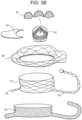FIGS.1C and1D are top view schematic illustrations of the prosthetic valve ofFIGS.1A and1B, and shown in the expanded configuration and the compressed configuration, respectively.