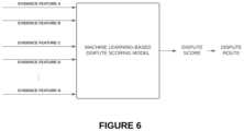 Accordingly, one or more of the machine learning-based dispute scoring models may be configured with learnable parameters mapped to each of the plurality of features of the extracted evidence feature dataset. That is, in some embodiments, the machine learning-based dispute scoring models may compute an updated or succeeding dispute score based in part on collected pieces of evidence. For example, in one embodiment, a learned feature of a machine learning-based dispute scoring model may be mapped to a reason code of a transaction dispute. In another example, in the same or an alternative embodiment, a learned feature of a machine learning-based dispute scoring model may be mapped to a bank identification number (BIN) of the issuing bank of the financial account user.