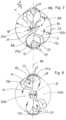 To reinforce this, it is also provided that thepivot point28 is not arranged centrically but eccentrically in relation to the contour of the circular arc-shaped or partial cylinder jacket-shapedomega valves4b, thepivot point28 being selected in such a way that, when the rotary movement or opening movement of the sealingvalves4boromega valves4bbegins, the latter are released from all the contact points38 or touch points38 existing on the circular arc or partial cylinder jacket and thus sealingpoints38 to thepump housing2 and in particular to thehousing wall2, the housing covers9,10 and their adjoining regions, and thus the turbulence and circulation set in both at the valve edges and their inner and outer surfaces, in particular caused by thefree space29 orexpansion29 and thefree space37 released between theomega valve4band theblade3.