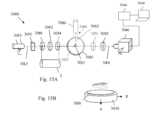 Thesystem4000 may direct light with certain polarization properties, for example, having a particular polarization state, to thedetector4130 using thepolarization optics4122. Thepolarization optics4122 may, for example, comprise a polarization filter or polarizer(s) configured to select and pass a particular polarization polarization state of theoutput light4134. Thepolarization optics4122 can include any suitable type of polarizer(s). For example, thepolarizing optics4122 may include an absorptive polarizer that can selectively transmit linearly polarize light. Control electronics that may include, for example, one or more hardware processors, may be able to control thepolarization optics4122 in order to change the polarization state selected from theoutput light4134. For example, thepolarizer4122 may be configured to rotate to select linearly polarized light having an particular angle, θ2, The control electronics may be configured to alter the angle of linear polarized light selected, e.g., selectively transmitted, for example, by rotating thepolarizer4122.