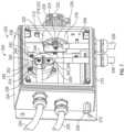 The positive terminal bus212 includes an externallyaccessible switch232 that allows a user to manually control the electrical connections within the positive terminal bus212. As depicted inFIG.7, thecylindrical body216 of the positive terminal bus212 extends through and out of thehousing204. Awaterproof cap234 is hingedly coupled to an external end of thebody216 to provide selective access to aswitch232 within thebody216. As explained below, theswitch232 is movable between an open position and a closed position. In the closed position, the terminals218 are electrically coupled to one another and electrical power transmitted through thecable226 can be transferred through the positive terminal bus212 to thecable228 and to theE-PTO system100. In the open position, the terminals218 are electrically decoupled and electrical communication between thecables226,228 is blocked.