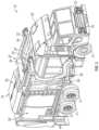 Referring to the exemplary embodiment shown inFIG.2, therefuse truck10 is a side-loading refuse vehicle that includes a lifting system, shown as agrabber38 that is configured to interface with (e.g., engage, wrap around, etc.) a refuse container (e.g., a residential garbage can, etc.). According to the exemplary embodiment shown inFIG.2, thegrabber38 is movably coupled to thebody14 with anarm40. Thearm40 includes a first end coupled to thebody14 and a second end coupled to thegrabber38. An actuator (e.g., a hydraulic cylinder42) articulates thearm40 and positions thegrabber38 to interface with the refuse container. Thearm40 may be movable within one or more directions (e.g., up and down, left and right, in and out, rotationally clockwise or counterclockwise, etc.) to facilitate positioning thegrabber38 to interface with the refuse container. According to an alternative embodiment, thegrabber38 is movably coupled to thebody14 with a track. After interfacing with the refuse container, thegrabber38 is lifted up the track (e.g., with a cable, with a hydraulic cylinder, with a rotational actuator, etc.). The track may include a curved portion at an upper portion of thebody14 so that thegrabber38 and the refuse container are tipped toward the hopper volume of thecollection chamber28. In either embodiment, thegrabber38 and the refuse container are tipped toward the hopper volume of the collection chamber28 (e.g., with an actuator, etc.). As thegrabber38 is tipped, refuse falls through an opening in thecover24 and into the hopper volume of thecollection chamber28. Thearm40 or the track then returns the empty refuse container to the ground, and thetop door36 may be slid along thecover24 to seal the opening thereby preventing refuse from escaping the collection chamber28 (e.g., due to wind).