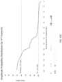 FIG.35 is a graph of distribution of users by average downlink Physical Resource Block (PRB) allocation. Real-time monitoring shows downlink resources allocated to each user. Allocations occur many times per second. A significant concentration of users on 739 MHz are allocated resources for voice service. Most users on 2165 MHz are allocated resources common for high-speed data.