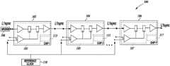 Circuitry105 included inchip104, in turn, distributes the timing signal (L1sync) received fromchip102 to the next chip in the daisy chain (e.g., to chip3). The nth chip distributes the timing signal L1sync to the n+1th chip, including to thelast chip106 includingcircuitry107 similar tocircuitry103,105.