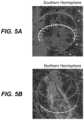 FIGS.5A and5B depict diagrams showing the solar radiation exposure at different times of day for geographical locations in the southern hemisphere and northern hemisphere respectively, according to embodiments.