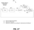 FIG.7B is graph illustrating an example of an aggregate curve188 (dotted line) of combi-sensor values determined using the maximum value method over the Summer Solstice day, according to embodiments. The aggregate curve is based on taking the maximum values of predicted clear sky solar radiation profiles for the three orientations East, South, and West. The graph also includes overlapping clear sky predicted solar radiation profiles (multiple solid lines) for every 10 degrees of azimuth angle orientations ranging from 0 (360) degrees to 350 degrees of a structure. As shown, the aggregate curve envelope will include the maximum values of all possible facade orientations for the day. That is, the combi-sensor value at each sample time will be greater or equal to the readings at all possible facades.