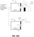Atstep720,window controller450 uses Module A to calculate the penetration depth of direct sunlight into theroom500 at the particular instant in time used instep710. Module A calculates the penetration depth based on the calculated position of the sun and window configuration information including the position of the window, dimensions of the window, orientation of the window (i.e. direction facing), and the details of any exterior shading. The window configuration information is input from the configuration file associated with theelectrochromic window505. For example, Module A can be used to calculate the penetration depth of the vertical window shown inFIG.16A by first calculating theangle9 of the direct sunlight based on the position of the sun calculated at the particular instant in time. The penetration depth can be determined based on calculated angle θ and the location of the lintel (top of the window).